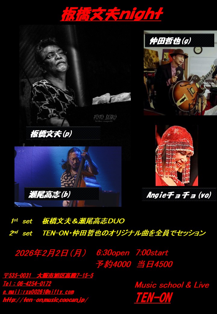 毎月1回、週末にやってます。1ステージのミニライブです。 17:30open 18:00start \1500(予約不要です) |