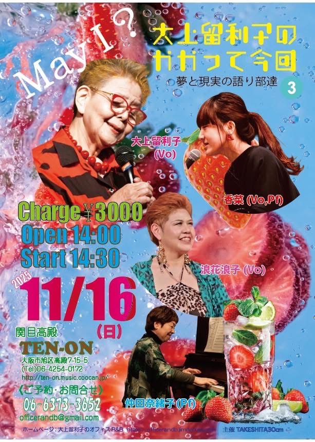 大上留利子のかかって今回 大上留利子(vo) 香菜(vo,p) 浪花浪子(vo) 仲田奈緒子(p)