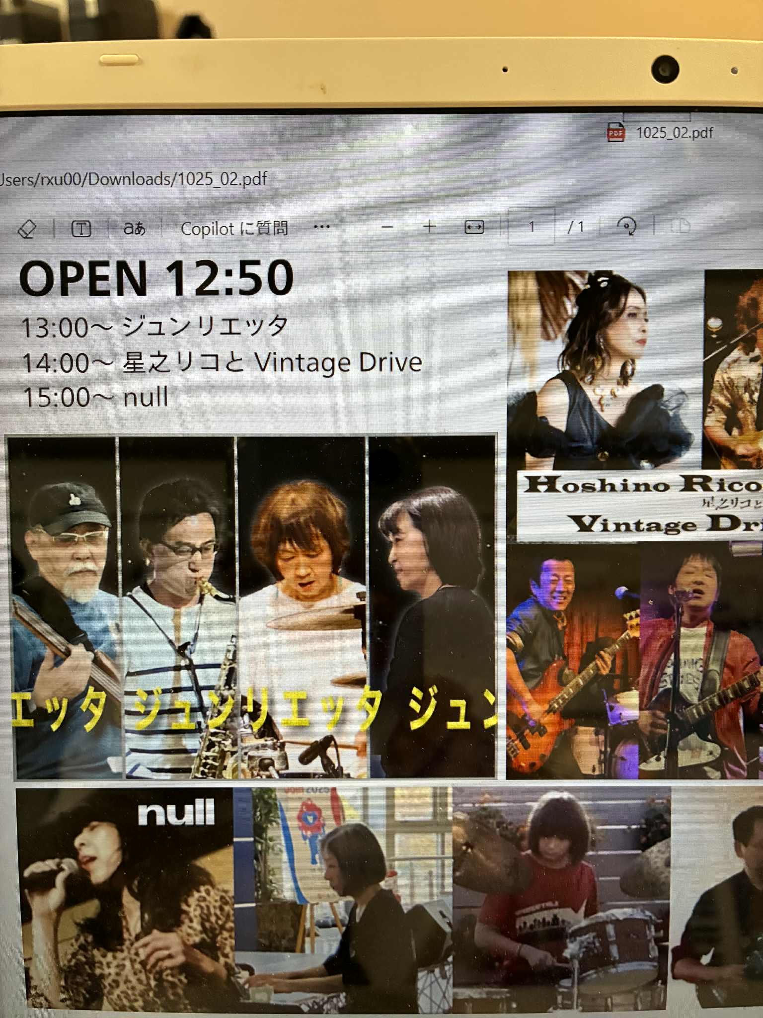 jazz & pops live open12:50 13:00 ジュンリエッタ 14:00 星之リコとvintagedrive 15:00 null