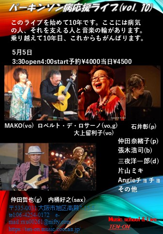 仲田奈緒子(p) 仲田哲也(g) ゲスト:大上留利子(vo) Angieチョチョ(vo) チャーコ(vo)